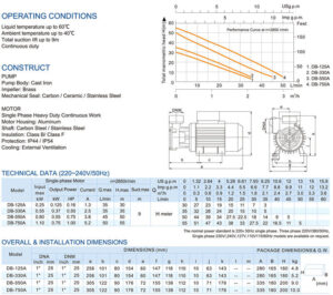 DB serisi çevresel pompalar esas olarak temiz su veya su karakterine benzer diğer sıvıların taşınmasında kullanılır. Evsel su temini, otomatik su sulama sistemi, küçük klima sistemi veya destekleyici ekipman vb. için uygundur.